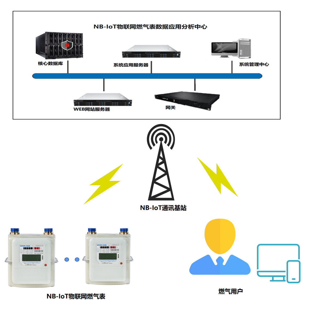 伊米斯燃气解决方案由NB-IoT物联网燃气表、NB-IoT通讯基站、企业管理系统、收费管理系统等组成。物联网燃气表通过内置的控制主板与NB-IoT通讯基站建立连接后自动将数据上传至云管理平台,然后通过云平台将数据下发收费管理系统。物联网燃气表不但具有膜式燃气表的精确计量功能,还实现了定期上报用气数据、NB-IoT远程充值、远程阀控、远程调价、故障自动上报、用气记录等功能。燃气用户可通过微信公众号、微信小程序、网上营业厅、支付宝生活缴费、APP等方式直接在网上完成充值缴费等,为燃气用户提供丰富、便捷的充值缴费渠道;